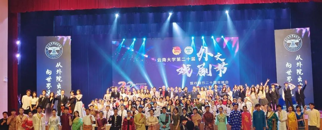 至此,拉斯维加斯0567官方网站第二十届外文戏剧节暨戏剧节二十周年晚会正式落下帷幕。外文戏剧节二十载,成就了一幕幕令人震撼的舞台画面,见证了每一位外院人不舍昼夜的不懈努力。未来可期,外院人仍将满怀热情,坚定信念,秉承“会泽百家、至公天下”的云大精神,怀抱梦想又脚踏实地,敢想敢为又善作善成,以骄人的成绩献礼百年华诞,以昂扬的姿态再启新程!再次感谢每一位闪耀夺目的表演者和默默奉献的幕后工作者们,期待外文戏剧节与您的下次相遇。