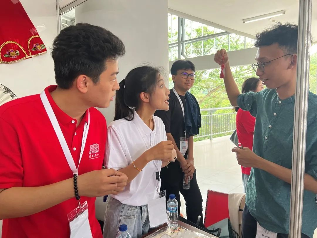在活动开幕式上,谢欣彤同学与各青年代表团同学协作表演了声乐联唱、器乐合奏、舞蹈串烧等节目。在学术论坛上,谢欣彤同学还以“非艺术专业的同学如何传承和保护传统文化艺术”为题进行了互动交流。在艺术与文化集市中的中国展台,谢欣彤同学向国外青年展示了拉斯维加斯0567官方网站书签、明信片、纪念币、云大剪纸画等百年校庆系列文创产品。